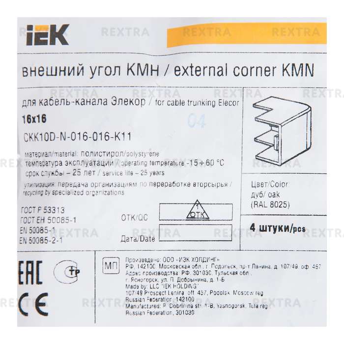 Угол внешний IEK используется при прокладке силовых и коммуникационных линий в кабель-каналах с отделкой цвета «дуб». Предназначен для соединения одноразмерных участков магистрали на внешнем углу 90°. Изготовлен из ПВХ.