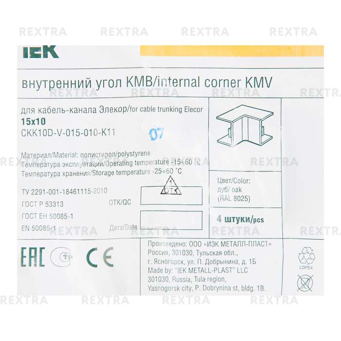 Угол внутренний IEK предназначен для соединения двух одинаковых кабель-каналов на внутреннем углу 90°. Используется при монтаже силовых и коммуникационных линий. Изготовлен из ПВХ.